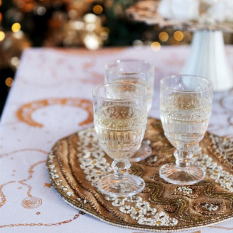 Calice acqua in vetro decorato. Il bicchiere firmato Blanc MariClò ha una lavorazione in rilievo elegante e raffinata.
