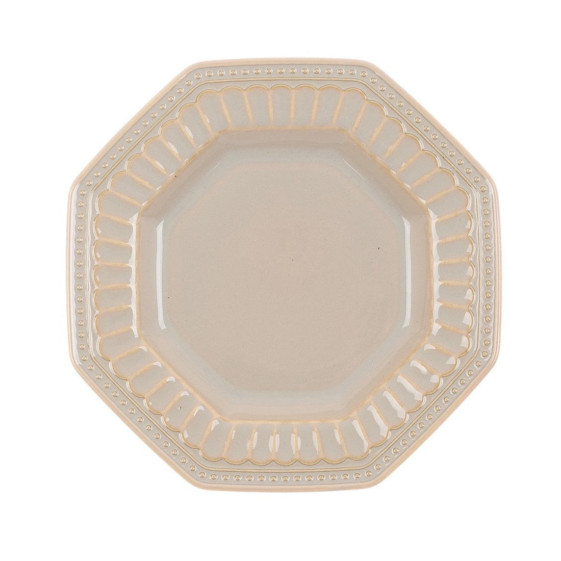 Piatto piano in ceramica con profilo ottagonale e finitura delicata. Perfetto per servire secondi piatti con eleganza, il suo colore neutro lo rende versatile per ogni occasione, dal pranzo quotidiano a cene più formali.
