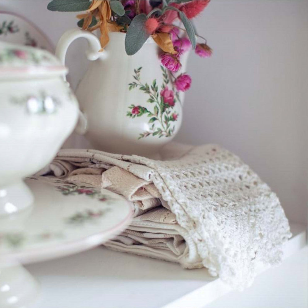 Romantico ed elegante set di tre canovacci/strofinacci 100% cotone, in colore naturale ed in perfetto stile Shabby Chic della linea Il Borgo di Blanc Mariclò. Arricchiti con raffinati ma resistenti pizzi e merletti in macramè renderanno unica la tua cucina e saranno anche un'apprezzatissima idea regalo! Disponibili in due varianti.