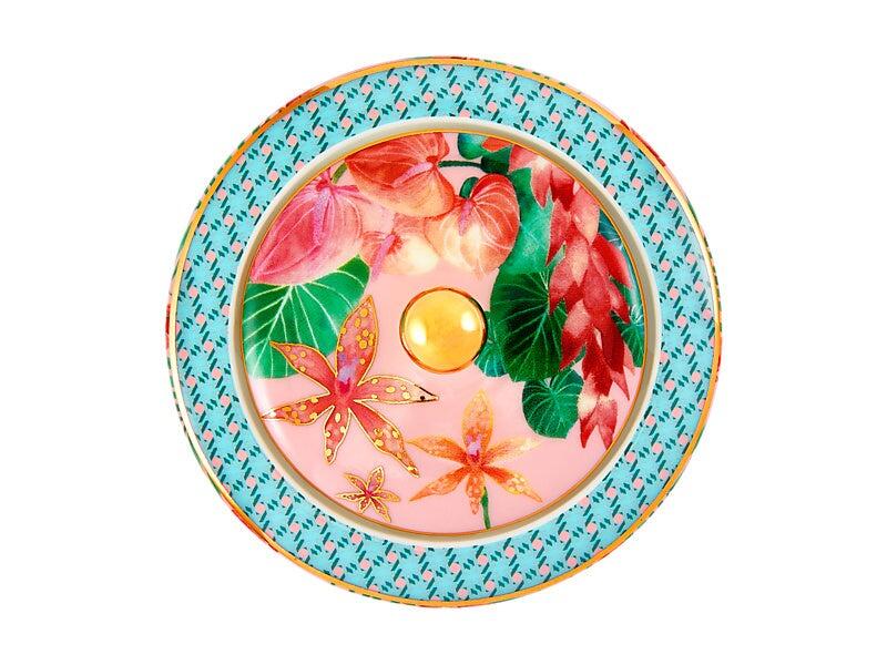 Rifinita con bordi in vero oro e dettagli floreali per un tocco di lusso